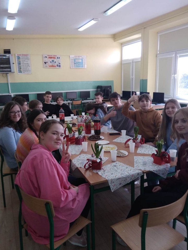 8 marca – Międzynarodowy Dzień Kobiet – na stałe wpisał się do szkolnego kalendarza. I mimo, że jego ranga, w porównaniu z minionymi okresami, znacznie spadła, co roku z okazji tego sympatycznego marcowego święta w naszej szkole pojawiają się kwiaty, życzenia i drobne upominki dla małych i tych większych kobiet. W ten wyjątkowy dzień zostały one powitane kwiatami oraz drobnymi upominkami a w klasach i na szkolnych korytarzach czuć wyjątkową atmosferę. Klasa IV i V z tej okazji pojechała do kina Odeon w Sochaczewie na film Szczęście Mikołajka, natomiast klasa VIII świętowała w szkole, wspólnie grając w zabawy integracyjne.