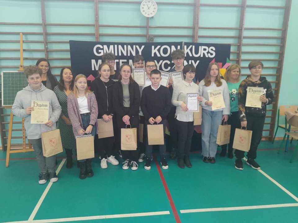 W piątek 8 grudnia 2023 w Szkole Podstawowej im. Bohaterów Bitwy nad Bzurą w Kozłowie Szlacheckim odbył się Gminny Konkurs Matematyczny dla klas 3 i dla klas 6-8. Każdą z czterech szkół podstawowych w gminie Nowa Sucha reprezentowało po trzech uczniów z klas młodszych i po tyle samo z klas starszych. Uczniowie z wielkim zapałem i determinacją zmagali się z zadaniami, zarówno zamkniętymi, jak i otwartymi. Wyniki wykazały wysoki poziom wiedzy matematycznej uczestników. W grupie klas IV-VIII pierwsze i drugie miejsce zajęli kolejno Kamil Ciećwierz i Maksymilian Sławiński uczniowie ze szkoły w Nowej Suchej. Na trzecim miejscu uplasowały się eqsequo uczennice Joanna Kijo z Kozlowa Biskupiego i Wiktoria Jaworska z Kurdwanowa. W grupie klas trzecich wszystkie punktowane miejsca zdobyli uczniowie z Kozlowa Szlacheckiego. Najlepszy był Jakub Nekka za nim Nikola Modzelewska i Aleksander Sierota. Gratulujemy zwycięzcom. Wójtowi gminy Panu Maciejowi Mońce dziękujemy za ufundowane nagrody dla zwycięzców i upominki dla wszystkich uczestników. Pani Annie Zatorskiej Janiak dziękujemy za obecność i wręczenie nagród na podsumowaniu konkursu.