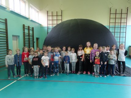 Dnia 22 stycznia na sali gimnastycznej naszej szkoły stanął ogromny namiot. Po wejściu do środka uczniowie zanurzyli się w niezwykłą podróż po wszechświecie.
