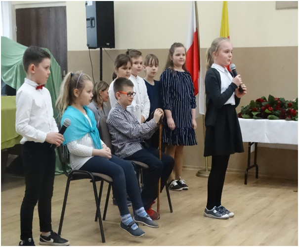 Oprawę artystyczną tej wyjątkowej uroczystości zapewnili uczniowie klasy pierwszej i drugiej z Kozłowa Szlacheckiego. Tematyka programu dotyczyła tego, co w życiu najważniejsze - miłości. Najbardziej wzruszającym momentem dla dostojnych Jubilatów było wysłuchanie przysięgi, którą małżonkowie składają przed Bogiem w dniu ślubu. Młodzi artyści zakończyli swój występ życzeniami i piosenką "Wszystkiego najlepszego" z repertuaru Danuty Rinn i Bogdana Czyżewskiego.
